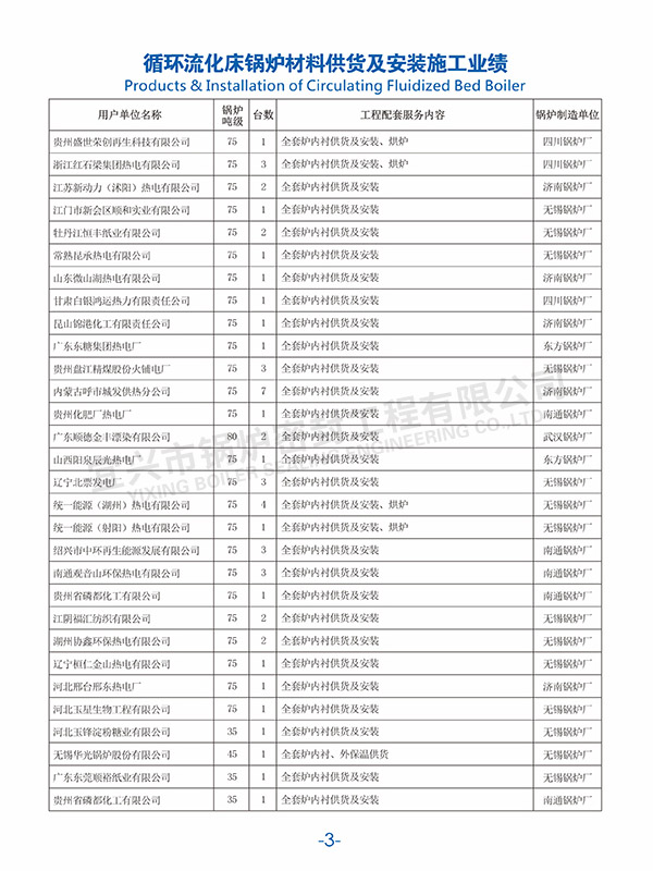 循環(huán)流化床鍋爐材料供貨及安裝施工業(yè)績(jī)(三)